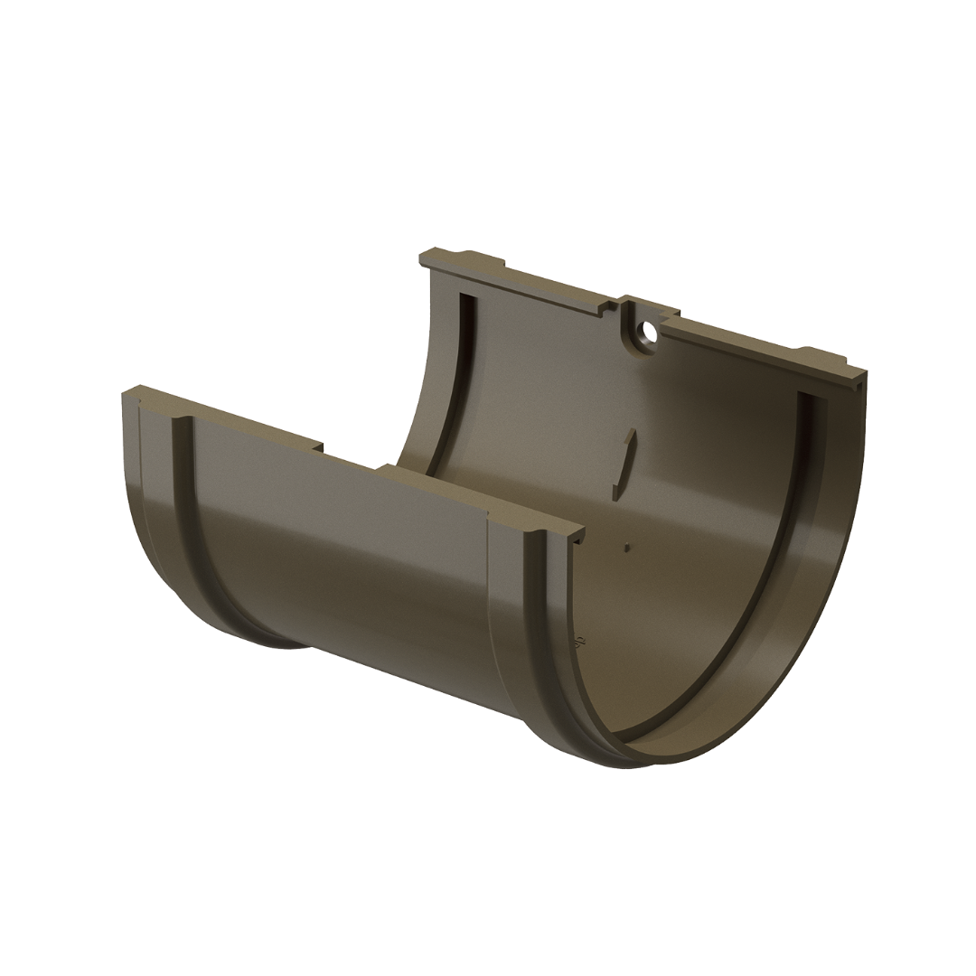 Соединитель желобов цвета «Каштан» из серии «Premium» необходим для соединения желобов такого же цвета вдоль одной оси.