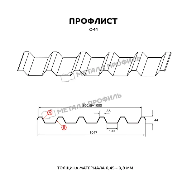 Наиболее рельефный профиль серии С в линейке Компании Металл Профиль. Данная пометка означает «стеновой», однако градация профнастила по сфере применения довольно формально. С-44 применяется как в коммерческом, так и в гражданском строительстве. Волна этого профиля имеет глубину 44 мм, выбрать толщину стального листа вы сможете сами – от 0,45 до 0,8 мм. С-44 отличается отличной стабильностью и улучшенной прочностью. Довольно популярный профиль для построек, подверженных повышенным нагрузкам. Например: торговые точки, гаражи, несъёмная опалубка, кровли скатных крыш, ограждения для частных территорий, промышленных зон и стройплощадок, бытовки. Материал С-44 характеризуется неуязвимостью к коррозии, к физическому и химическому воздействию, климатическим изменениям. Ещё один его несомненный плюс – высокая прочность и небольшой вес. Также он просто и понятно устанавливается. Продолжительность службы С-44 может достигать 50 лет, в соответствии с гарантийным сроком выбранного покрытия. Финишный слой создаёт оцинкованному листу элегантный вид и совершенствует его параметры.Покрытие VikingMP®: