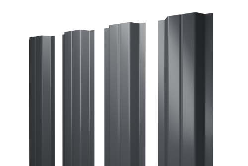 Штакетник П-образный A с прямым резом 0,5 GreenCoat Pural BT, matt RR 23 темно-серый (RAL 7024 мокрый асфальт) в Коврове