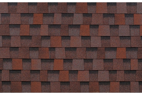 Сложный цвет и фактура проявляются за счет объемной структуры гонта и продуманной композиции цветов базальтовой посыпки. Смотрится солидно и основательно.