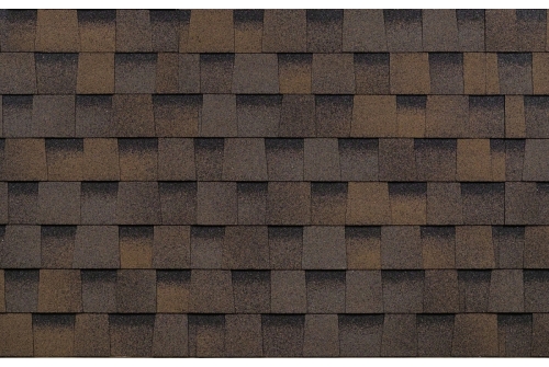 Сложный цвет и фактура проявляются за счет объемной структуры гонта и продуманной композиции цветов базальтовой посыпки. Смотрится солидно и основательно.
